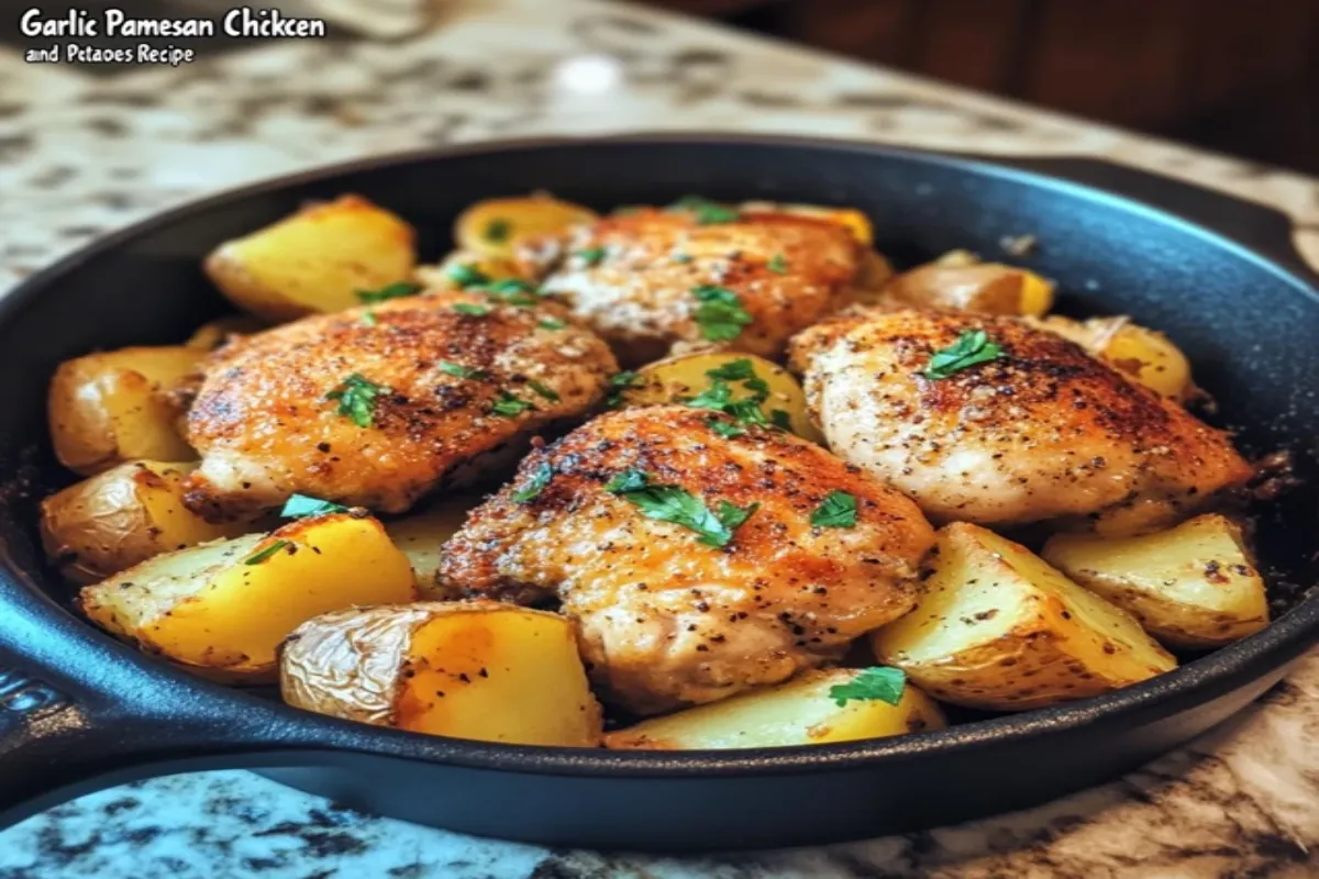 The standout feature of this recipe is its simplicity as a one-pan meal. All the ingredients—chicken, potatoes, garlic, and Parmesan—cook together in a single skillet or baking dish, making preparation and cleanup incredibly easy. This recipe is ideal for busy weeknights when time is limited or for relaxed weekends when you want a hearty, flavorful meal without much effort. The one-pan method also ensures the flavors meld beautifully as the chicken juices and seasonings coat the potatoes, creating a delicious harmony.